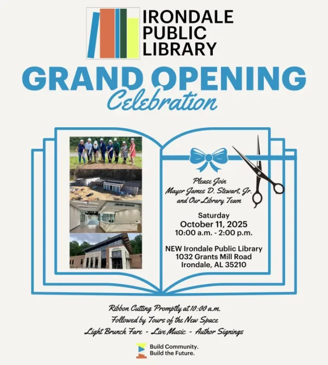 This is more than a new building. It’s a new chapter for Irondale. We’ll see you at the library on October 11.